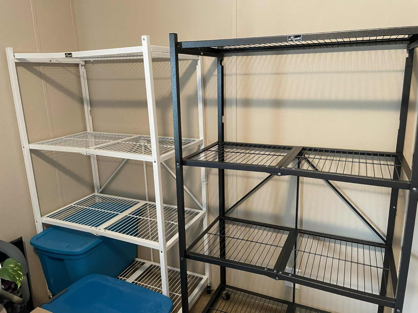 ✔️Includes two four-tier racks and four magnetic shelf liners✔️Four caster wheels, two with smart-lock technologyEach rack measures 35.82" x 20.86" x 60.03"; weighs 76.56 lbs; 250-lb capacity per shelf (without wheels); 75-lb capacity per shelf (with wheels)